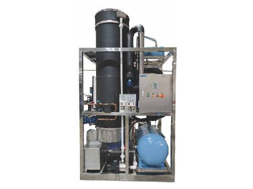 工作原理:首先压缩机开机制冷当管冰达到要求厚度时,转入脱冰模式,制冷剂热气进入蒸发器使管冰融化掉落,切冰机构工 作,将管冰切成设定的尺寸并在出冰口排出,如此不断循环。